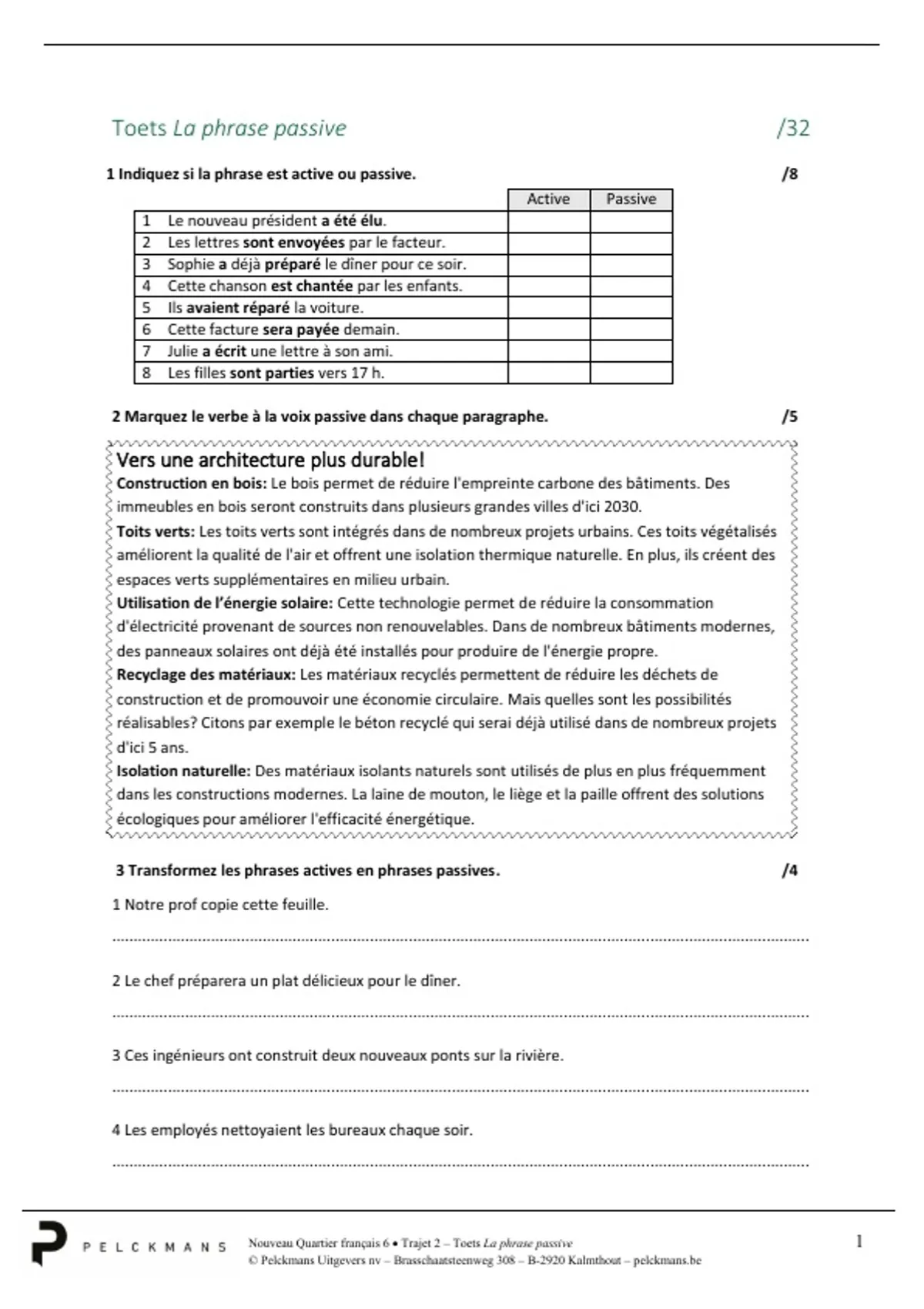 Nouveau Quartier français 6 • Trajet 2 – Toets La phrase passive 1