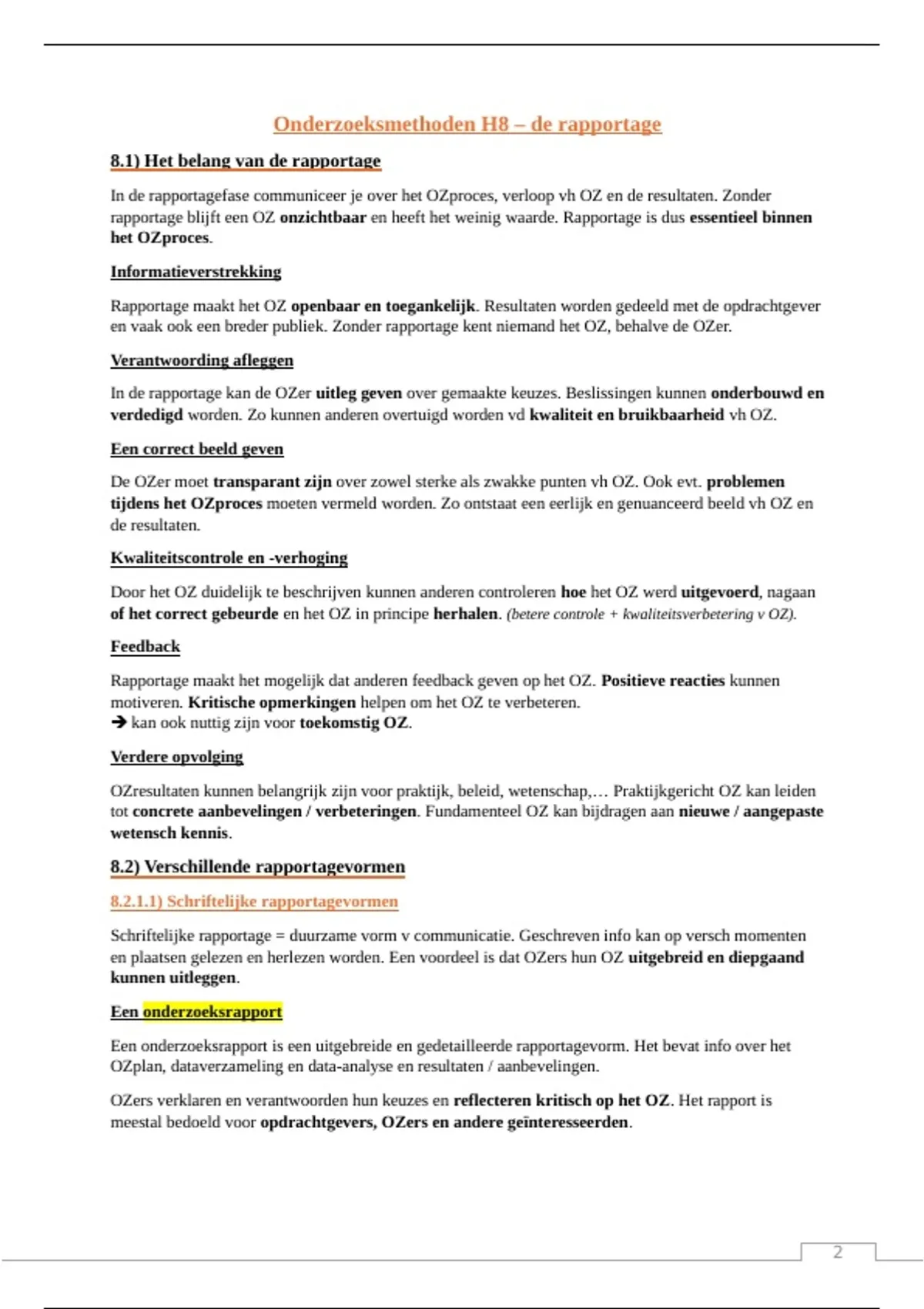 Onderzoeksmethoden H8 – de rapportage