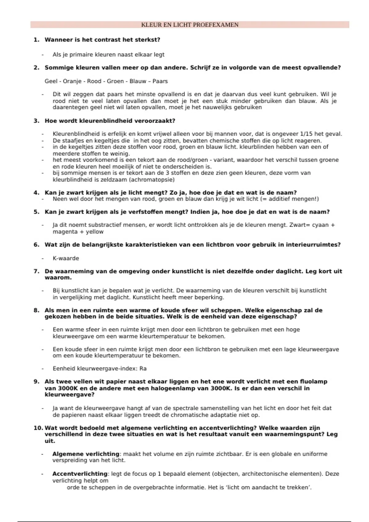 10. Wat wordt bedoeld met algemene verlichting en accentverlichting? Welke waarden zijn
