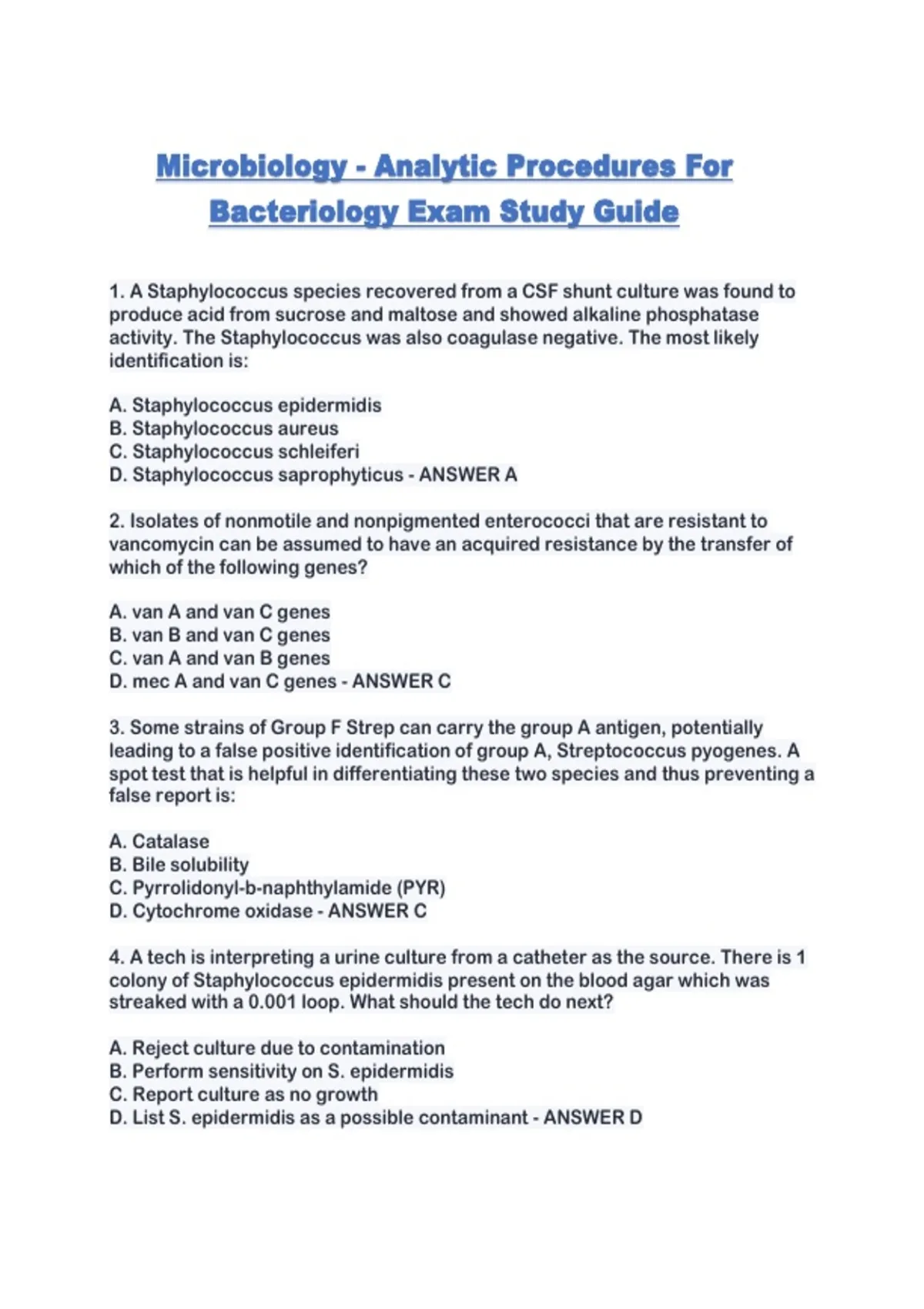 Microbiology - Analytic Procedures For Bacteriology Exam Study Guide...