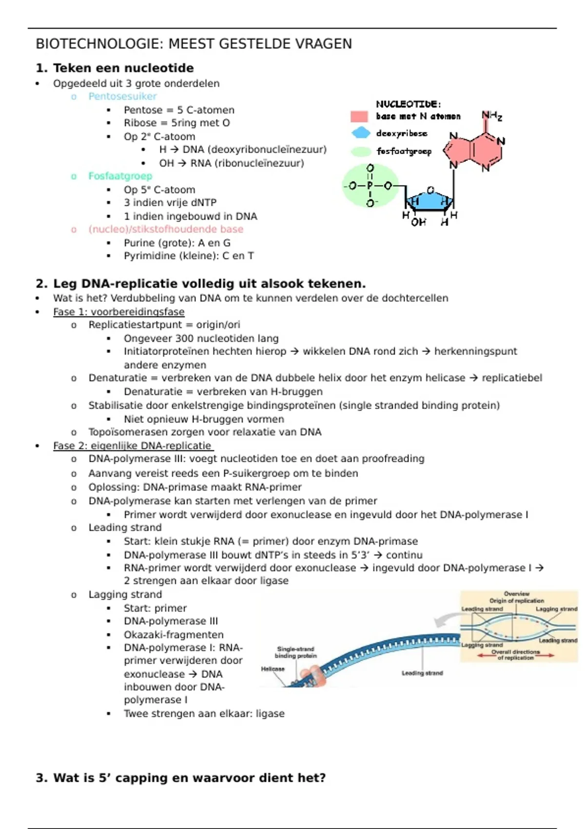 2. Leg DNA-replicatie volledig uit alsook tekenen.