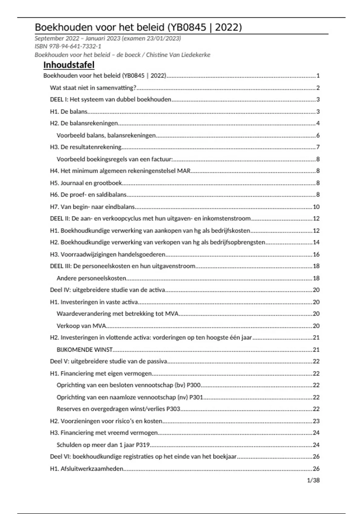 Boekhouden voor het beleid (YB0845) - de boeck / Chistine Van Liedekerke Samenvatting (+voorbeeldvragen)