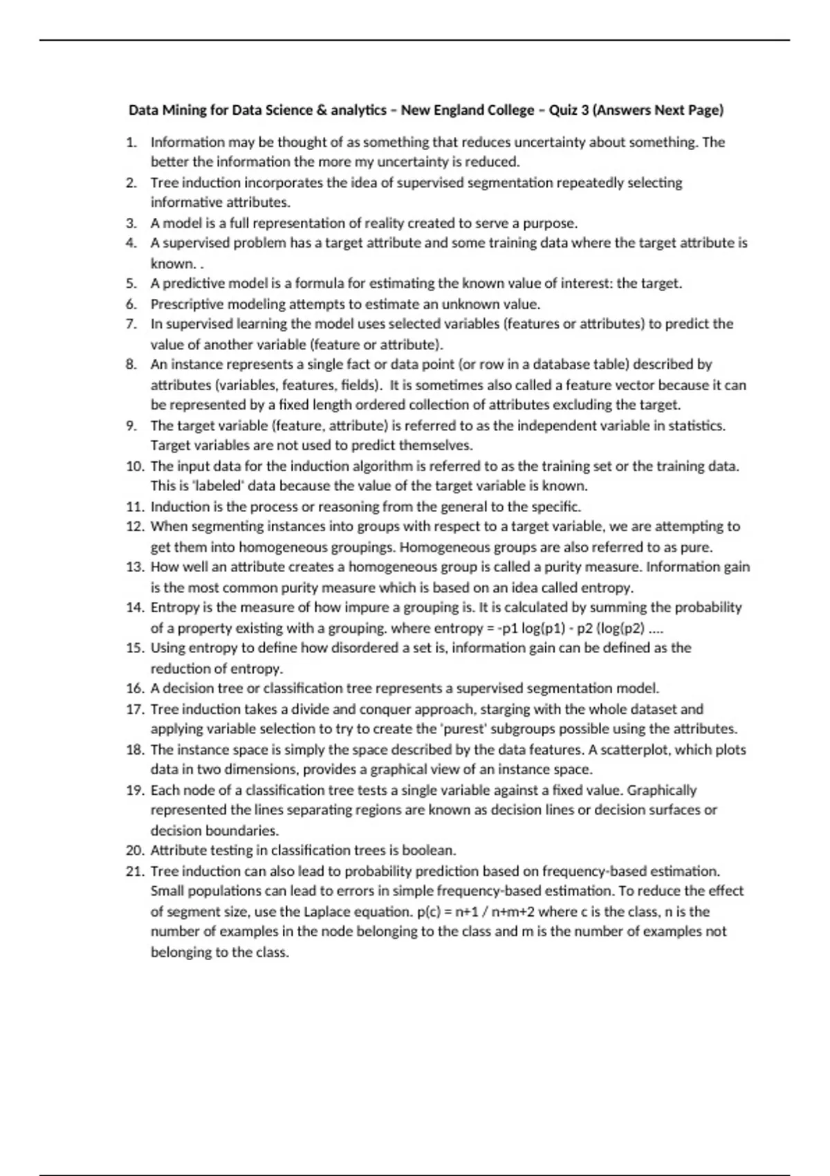 Data Mining for Data Science and Analytics - Quiz 3 - Questions & Answers