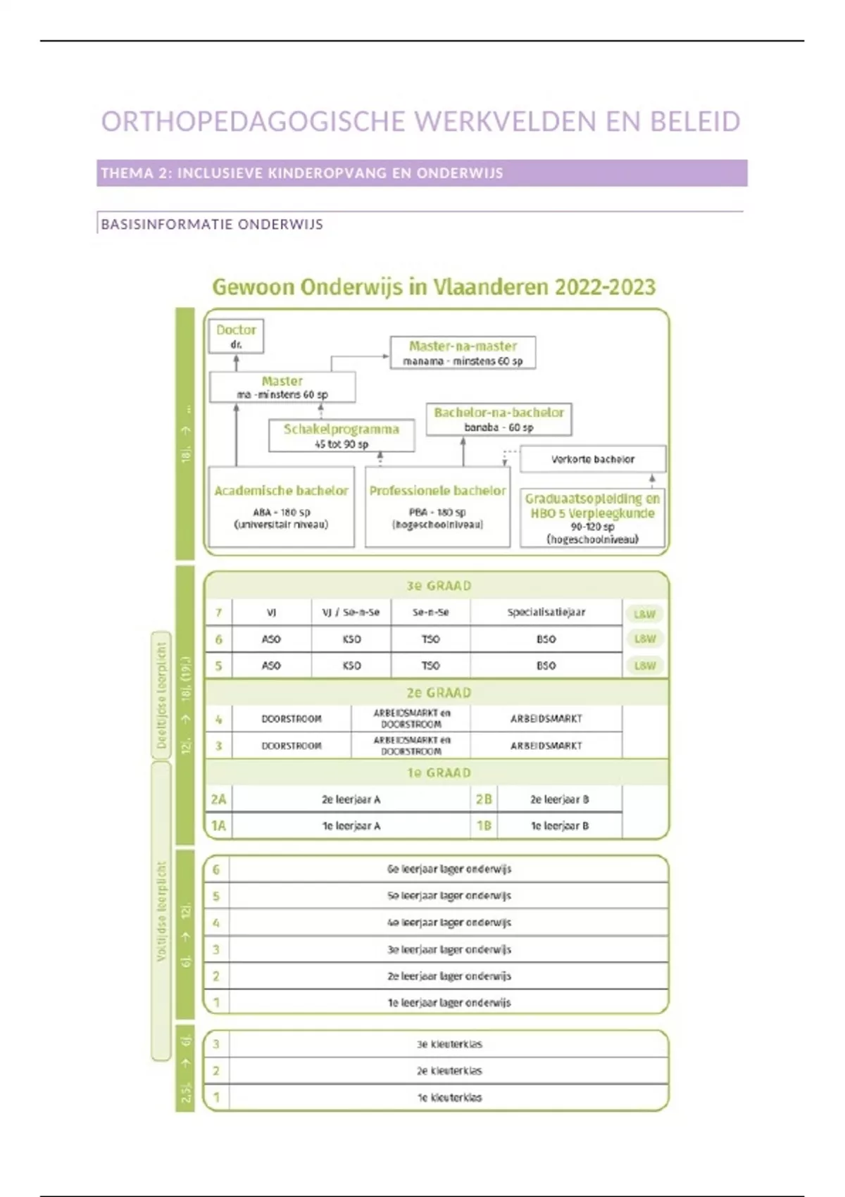 Samenvatting van 22 pagina's voor het vak Orthopedagogische werkvelden en beleid aan de HoGent (Thema 2 Onderwijs)