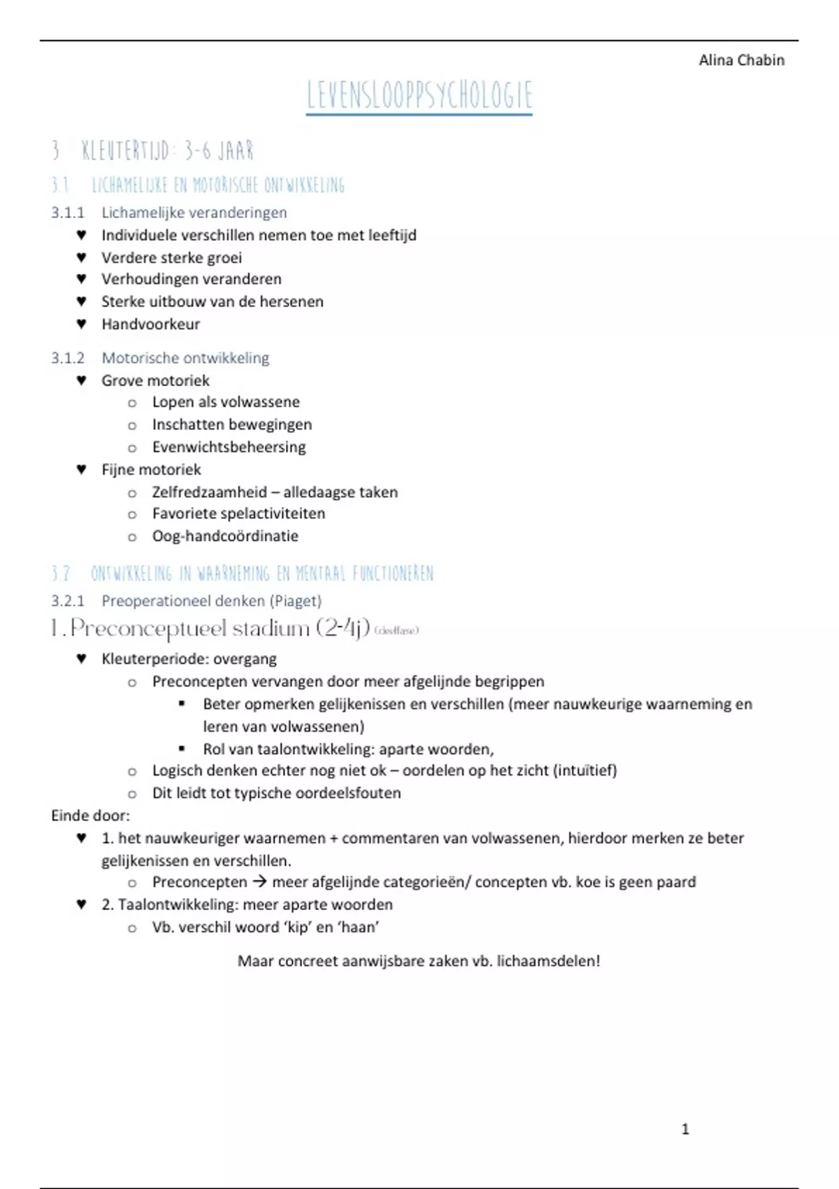 Deze samenvattingen bestaat uit info van de lessen, de cursus en de powerpoints. Vanaf de kleutertijd, de volwassenheid is een aparte taak