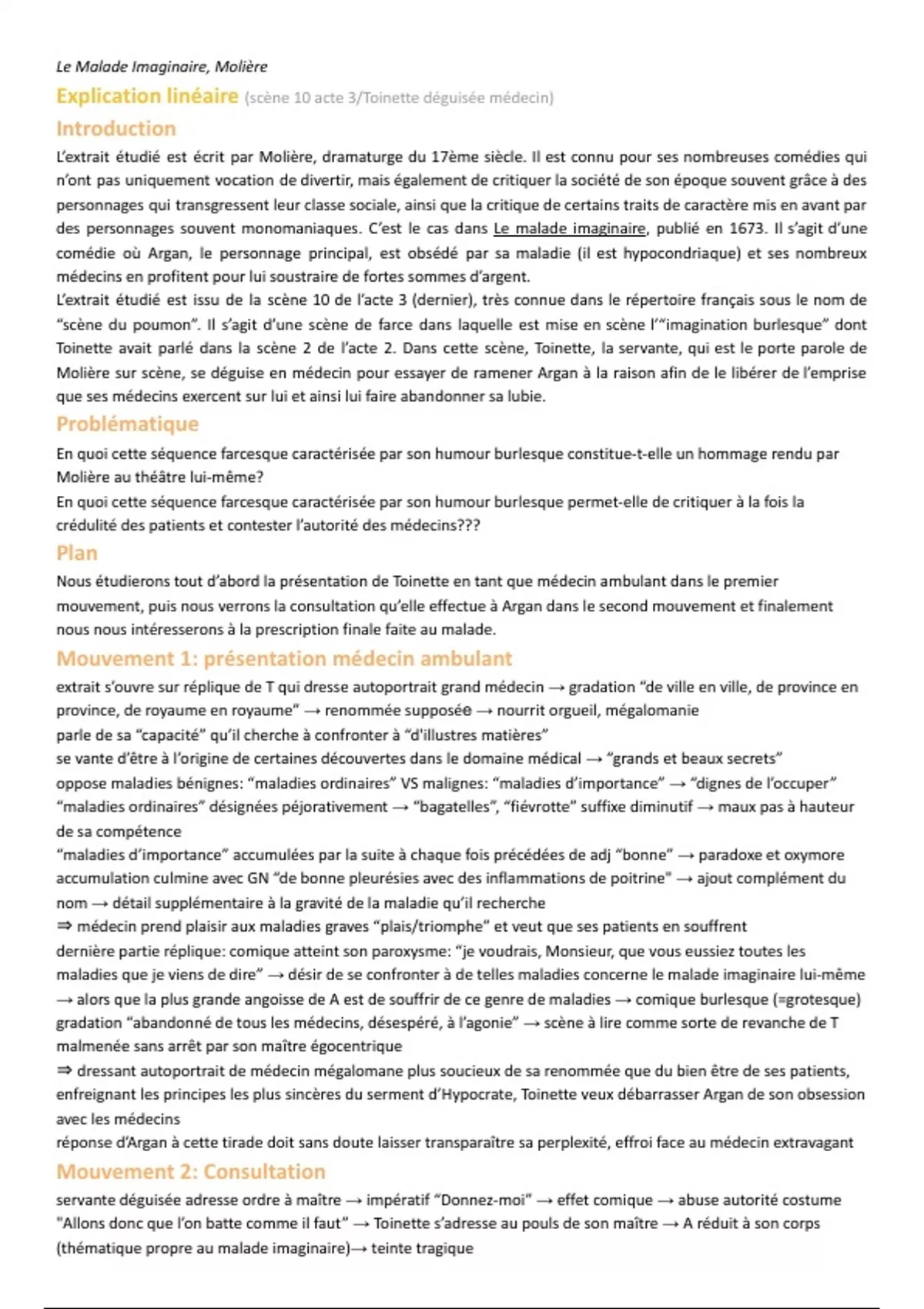 Explication linéaire (scène 10 acte 3/Toinette déguisée médecin)