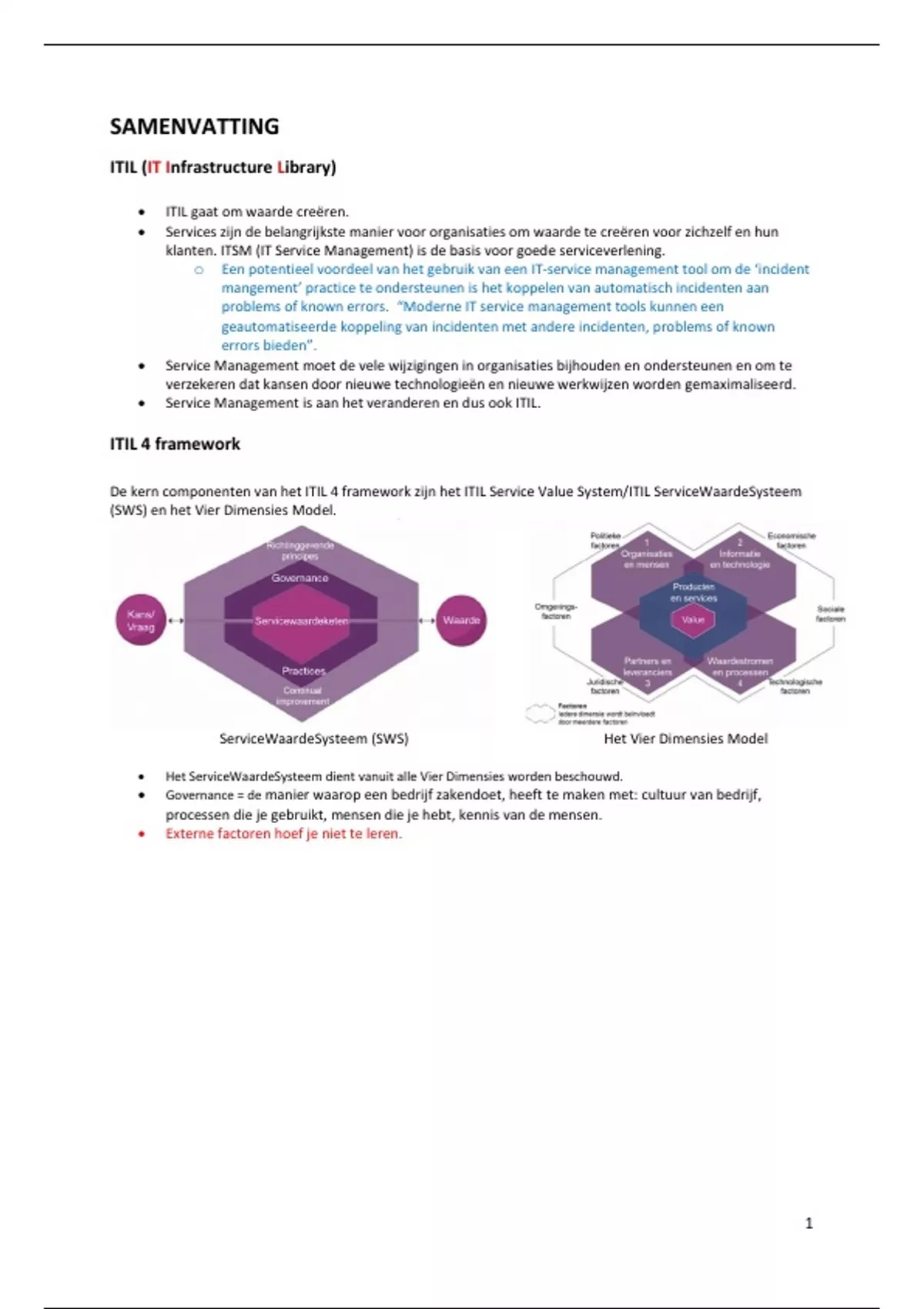• Het ServiceWaardeSysteem dient vanuit alle Vier Dimensies worden beschouwd.