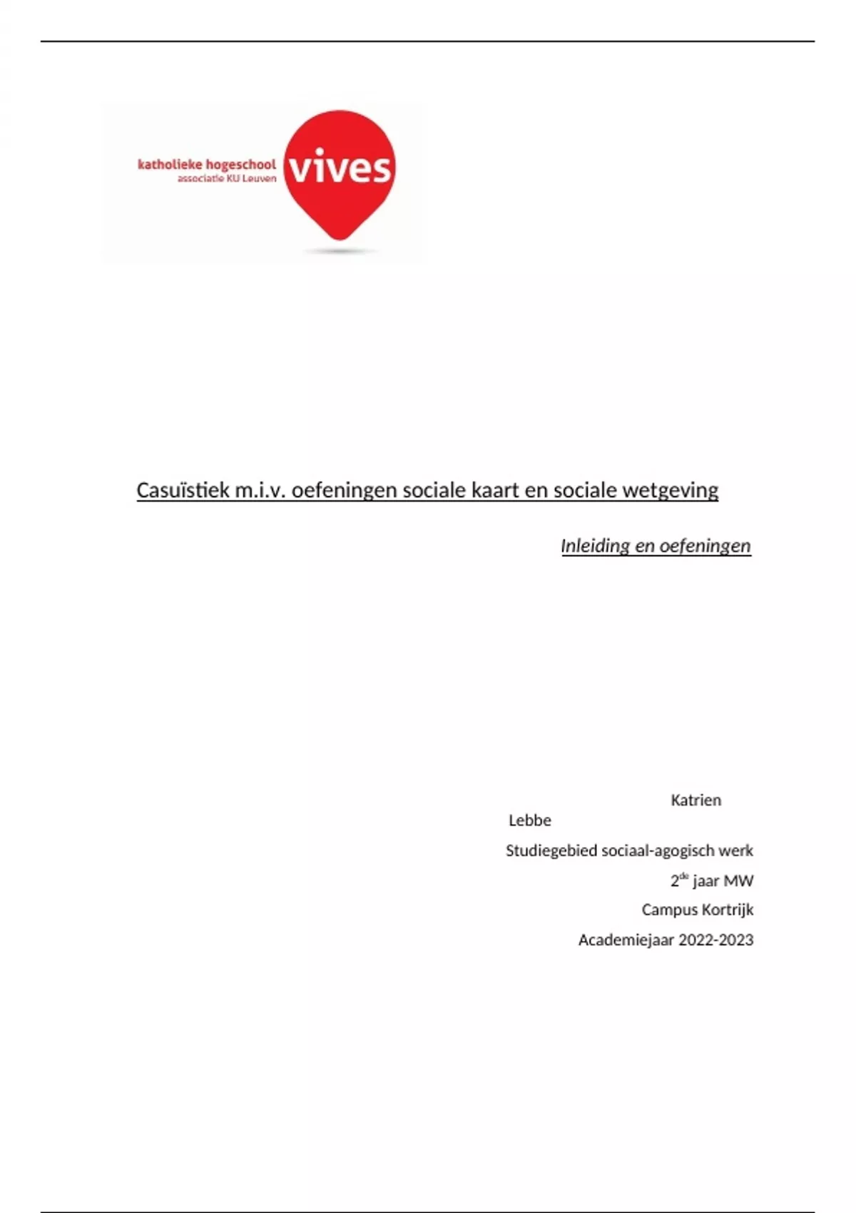 Casuïstiek m.i.v. oefeningen sociale kaart en sociale wetgeving