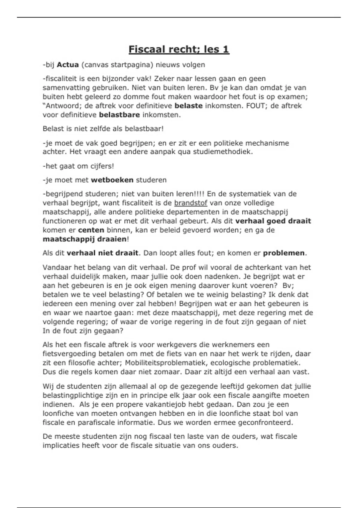 -fiscaliteit is een bijzonder vak! Zeker naar lessen gaan en geen samenvatting gebruiken. Niet van