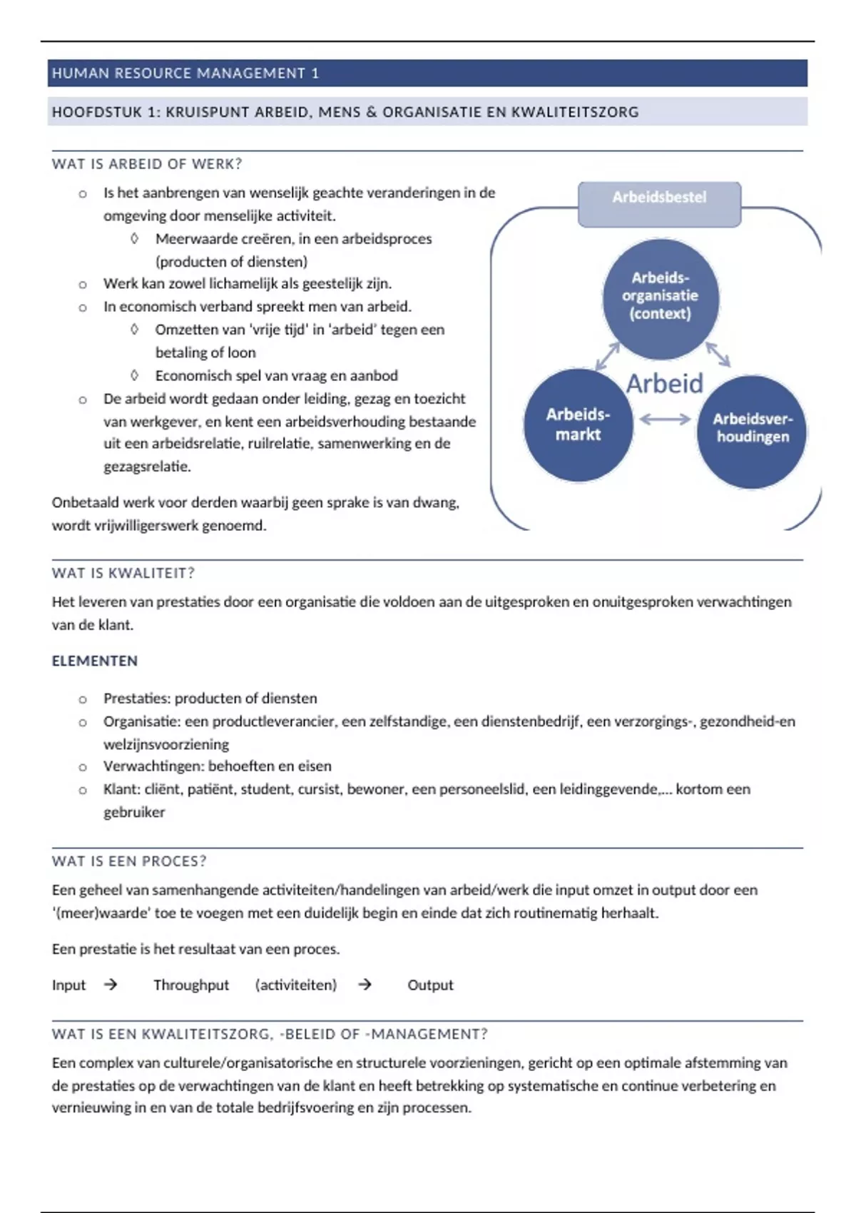 HOOFDSTUK 1: KRUISPUNT ARBEID, MENS & ORGANISATIE EN KWALITEITSZORG