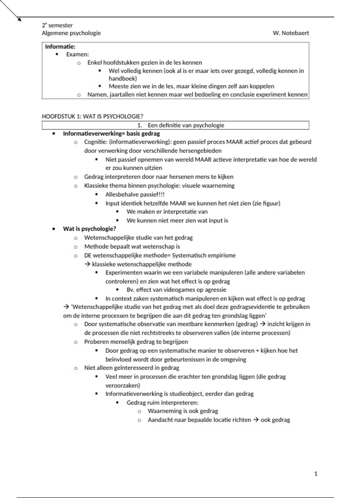 HOOFDSTUK 1: WAT IS PSYCHOLOGIE?