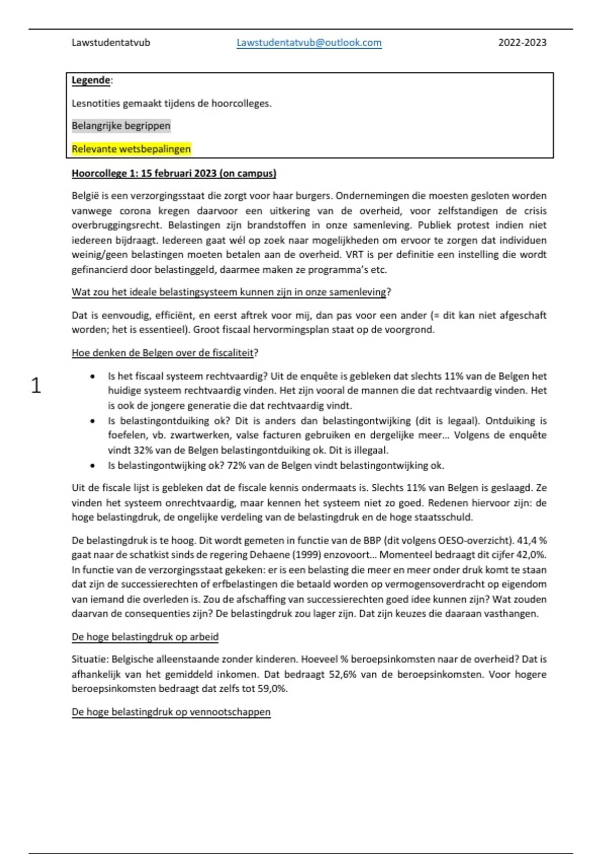 Samenvatting fiscaal recht alle hoorcolleges erin vervat