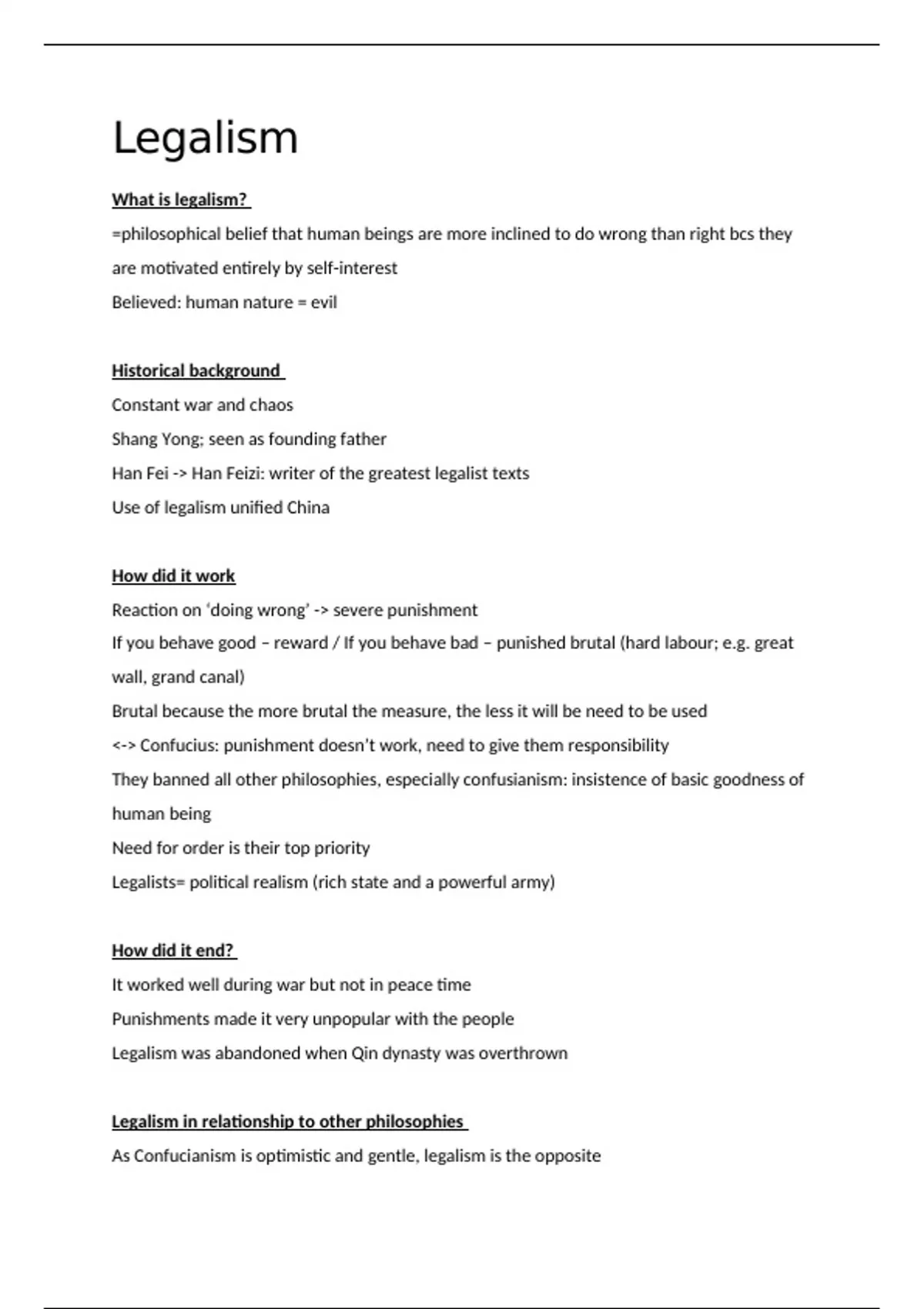 As Confucianism is optimistic and gentle, legalism is the opposite