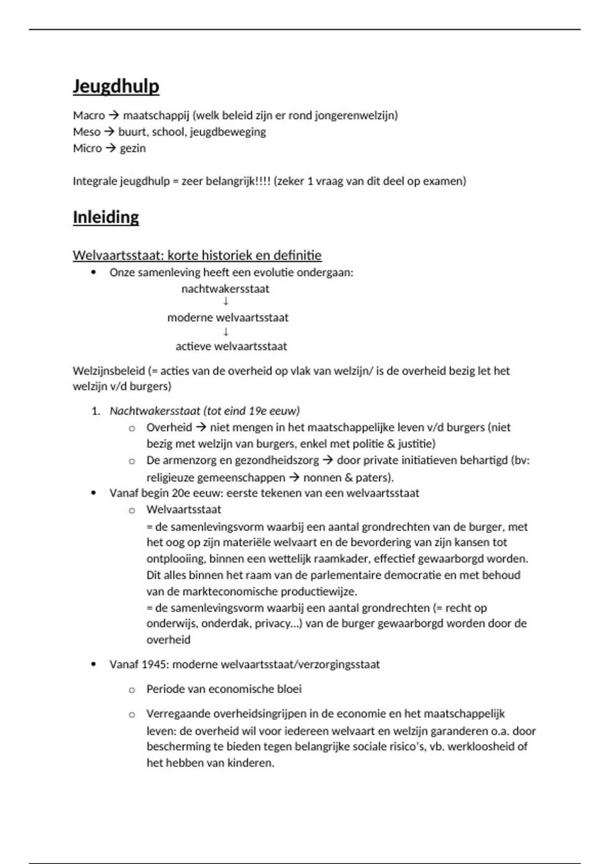 Samenvatting van Inleiding tot Jeugdhulp in het 1ste jaar van Sociale readaptatiewetenschappen.