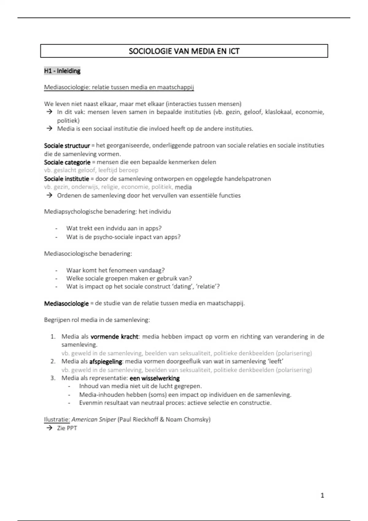 Samenvatting van het vak Sociologie van Media en ICT (of Mediasociologie). Gegeven door prof Amélie Godefroidt aan de KU Leuven.