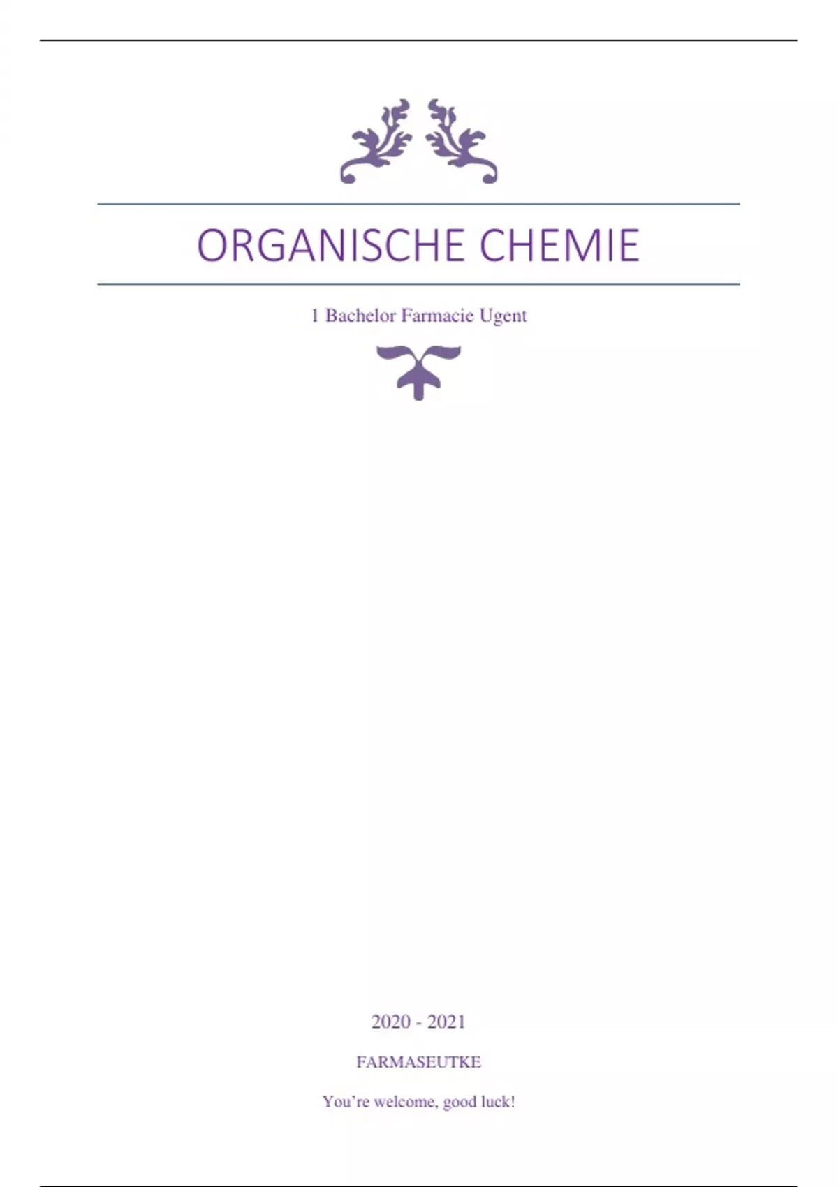 GESLAAGD IN 1E ZIT. Volledige samenvatting van het vak 'Organische Chemie', gebaseerd op college slides en eigen notities. Bevat alle leerstof met een overzichtelijke structuur. Perfecte voorbereiding voor het examen. Contacteer mij gerust bij verdere vragen.