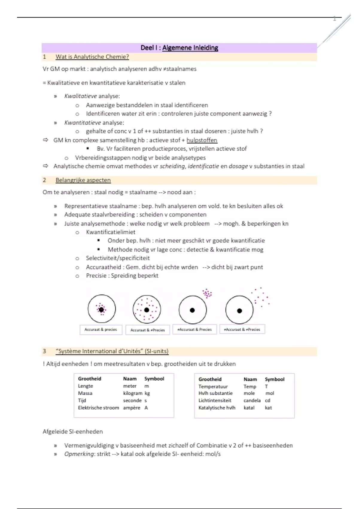 Analytische chemie omvat methodes vr scheiding, identificatie en dosage v substanties in staal