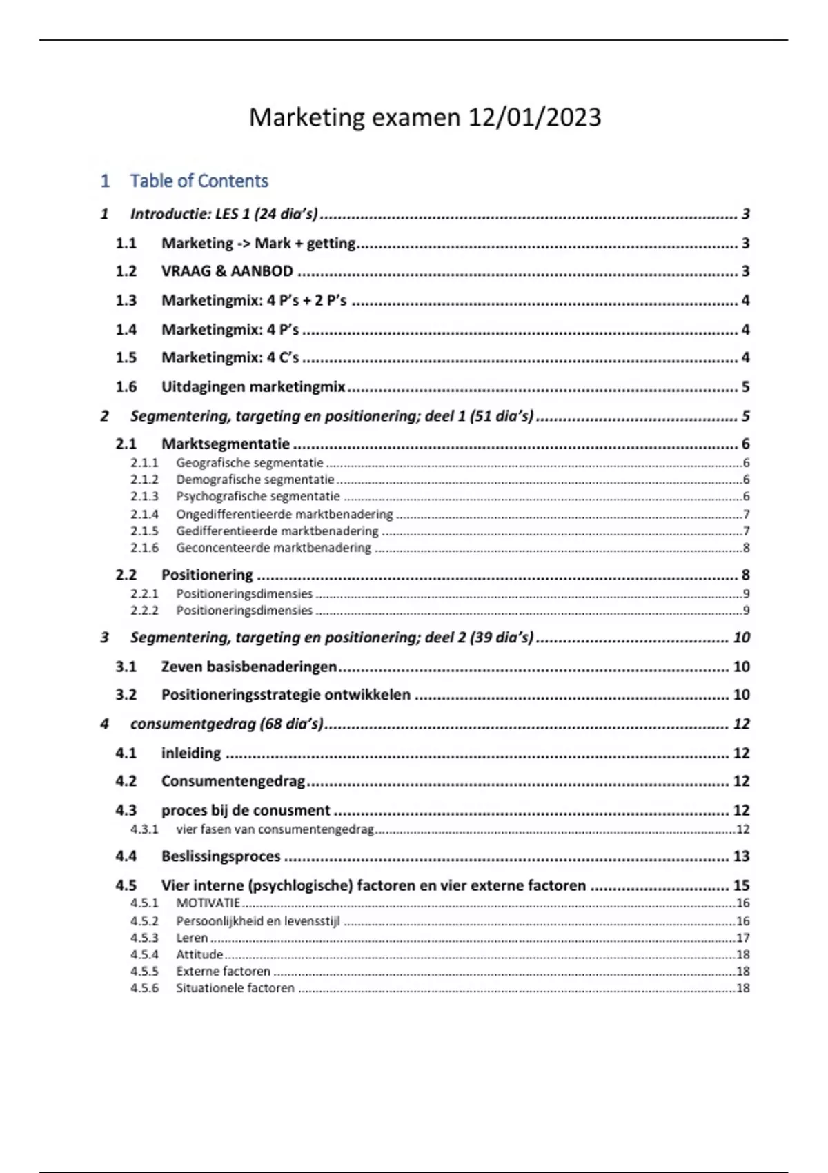 2 Segmentering, targeting en positionering; deel 1 (51 dia’s) ............................................. 5