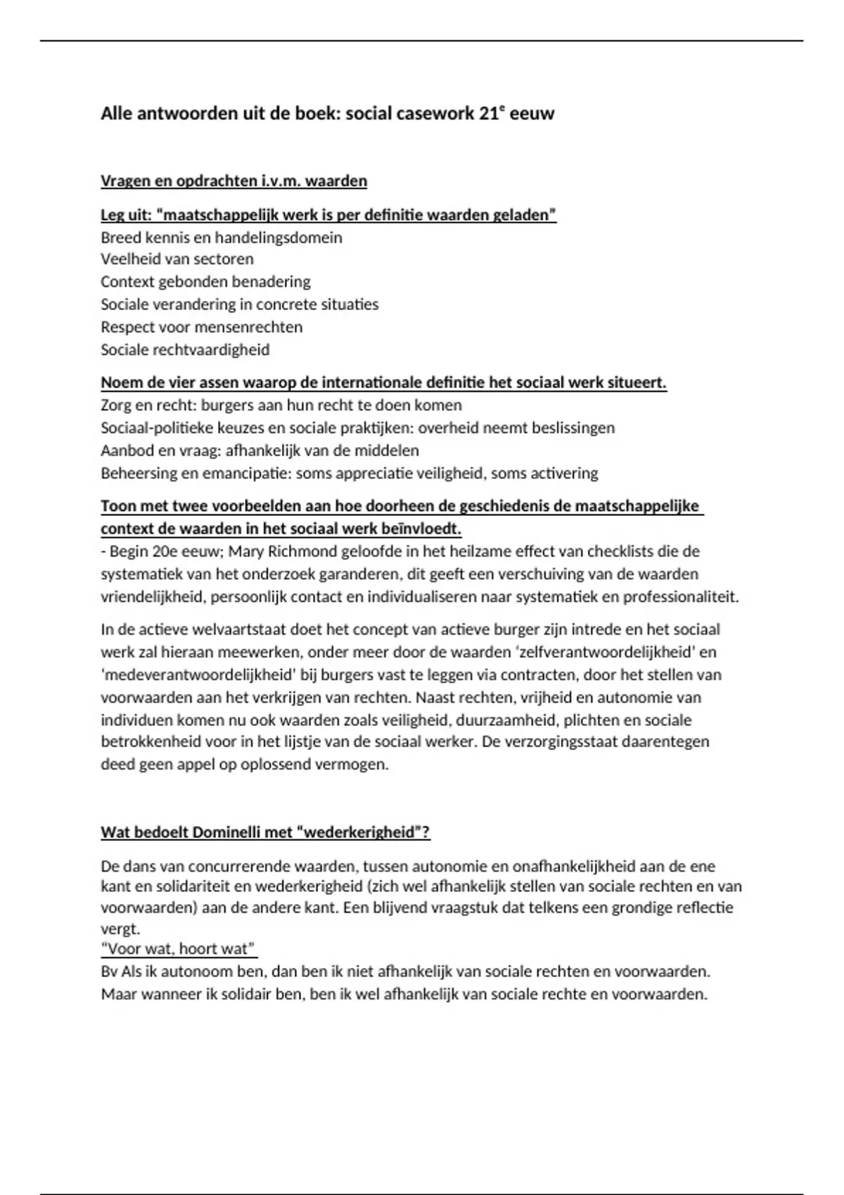Alle opgeloste vragen uit het boek social casework in de 21ste eeuw.