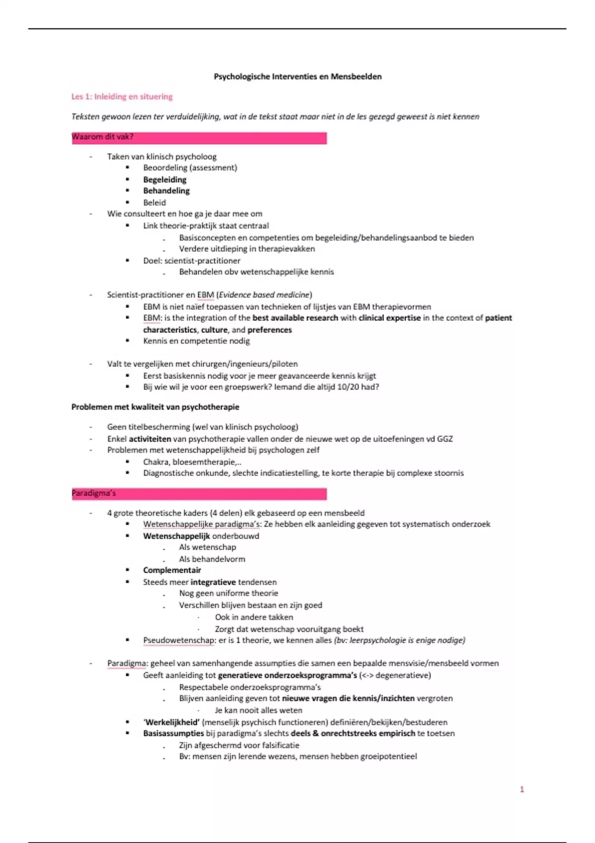 - Paradigma: geheel van samenhangende assumpties die samen een bepaalde mensvisie/mensbeeld vormen