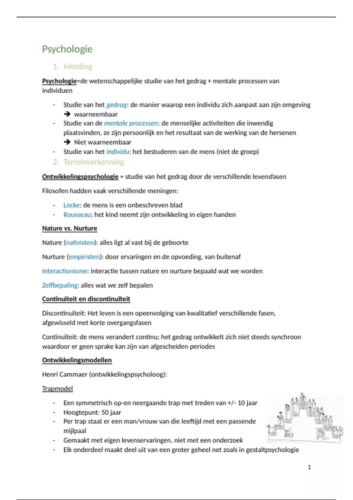 Psychologie=de wetenschappelijke studie van het gedrag + mentale processen van