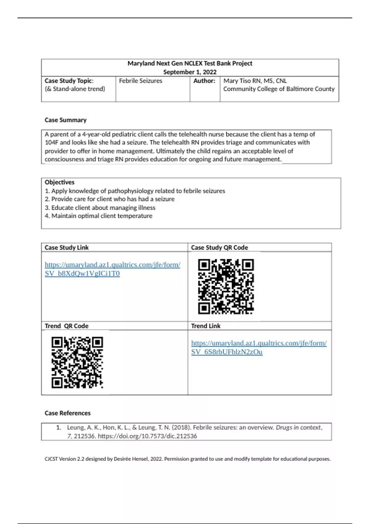 Next Gen NCLEX : Case Study Topic: (& Stand-alone trend) Febrile Seizures Answered.
