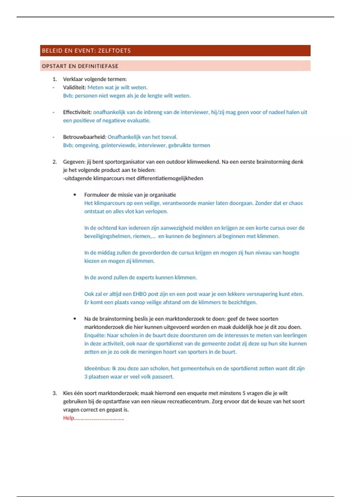Samenvatting studievragen sportevent