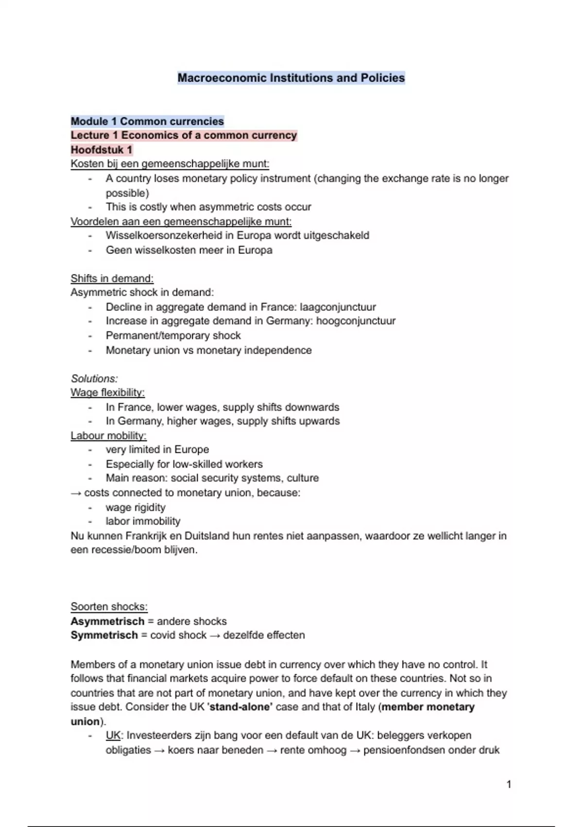 Asymmetrisch = verschillende shocks per land