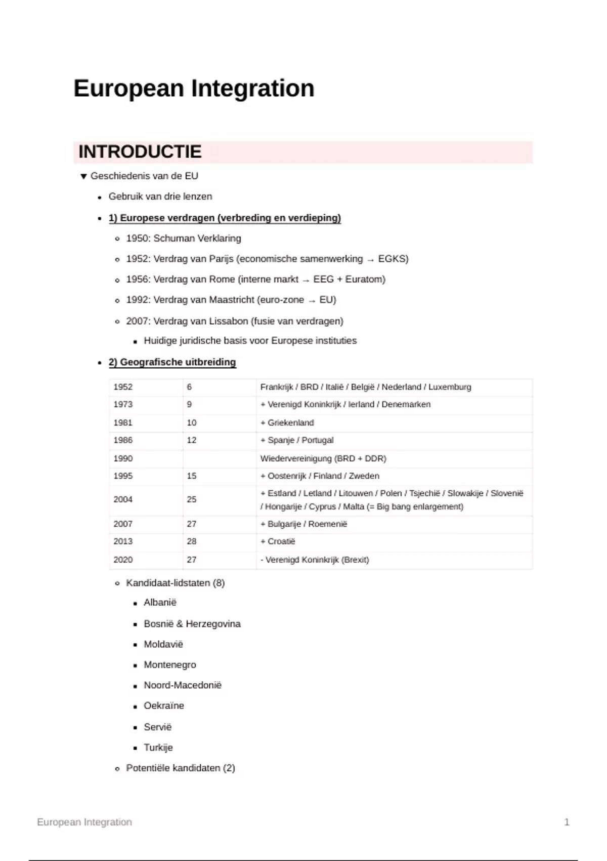 1) Europese verdragen (verbreding en verdieping)