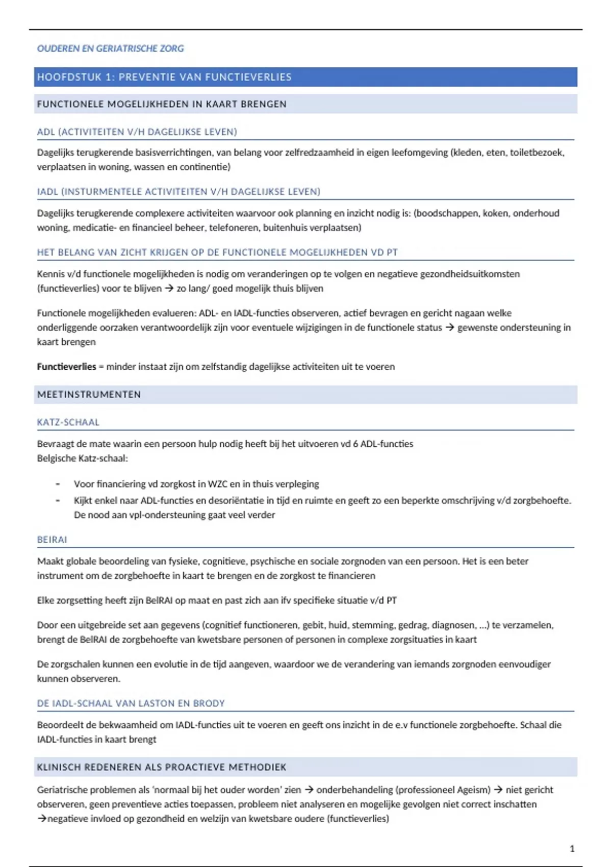 HOOFDSTUK 1: PREVENTIE VAN FUNCTIEVERLIES