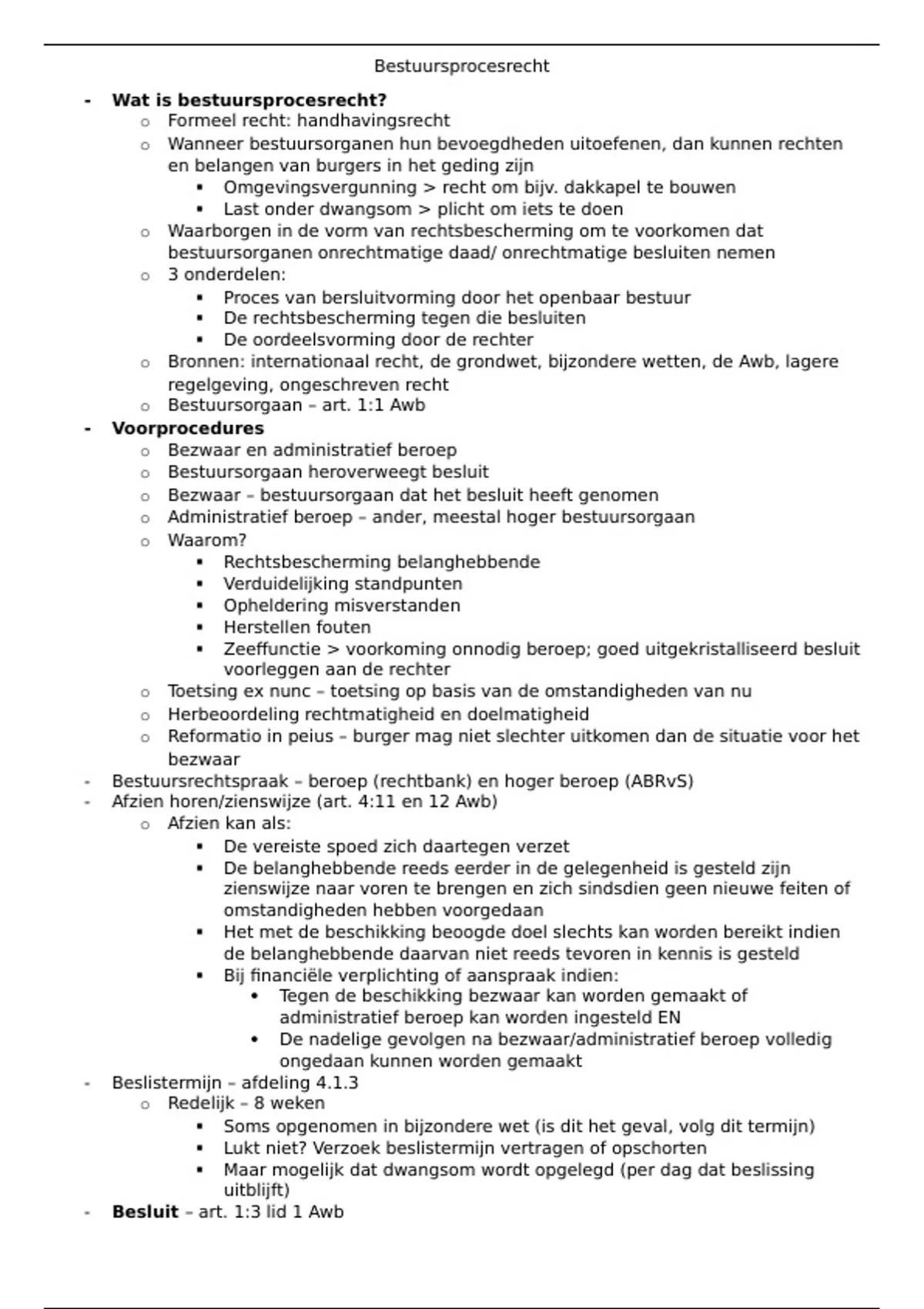 Samenvatting Bestuursprocesrecht Windesheim