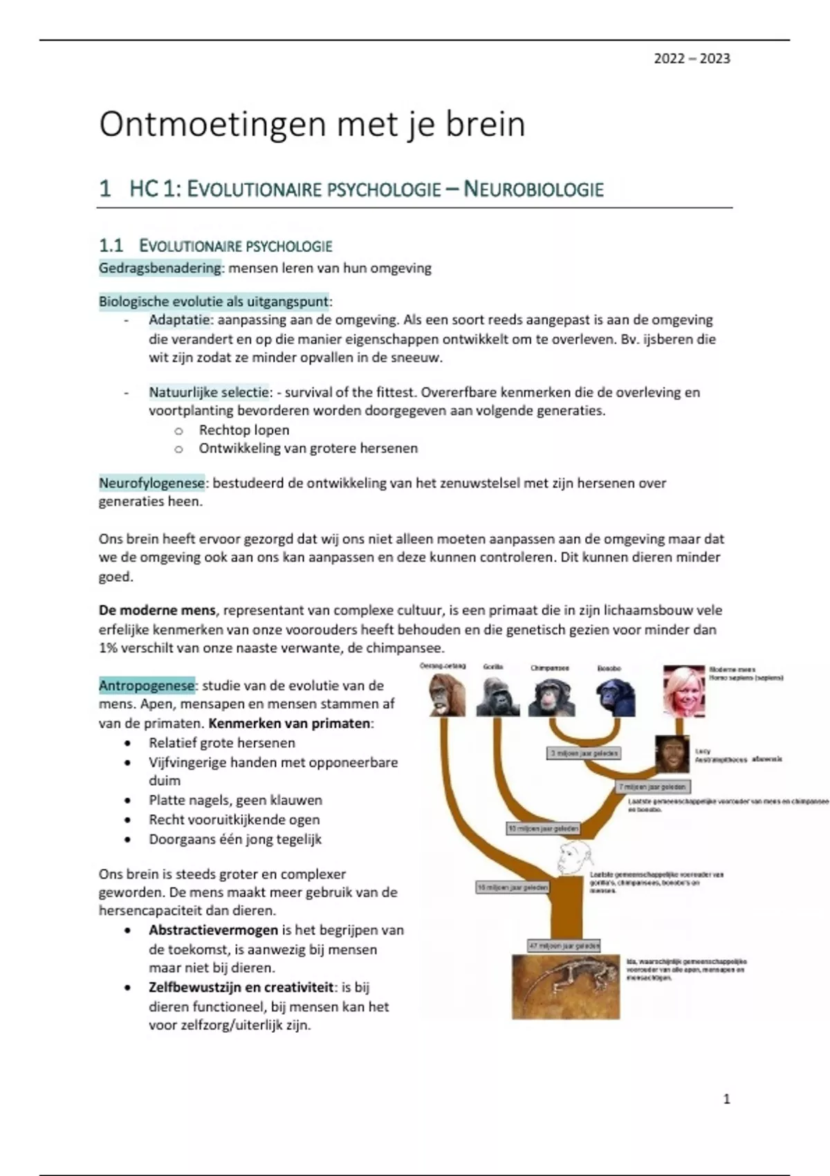 1 HC 1: EVOLUTIONAIRE PSYCHOLOGIE – NEUROBIOLOGIE