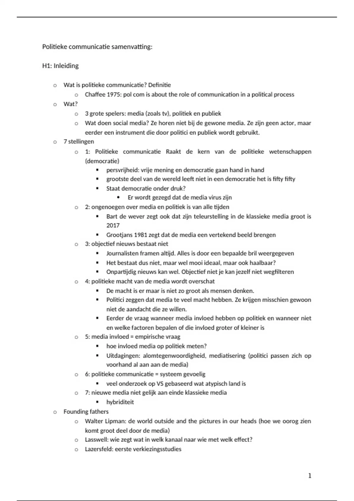 o 1: Politieke communicatie Raakt de kern van de politieke wetenschappen