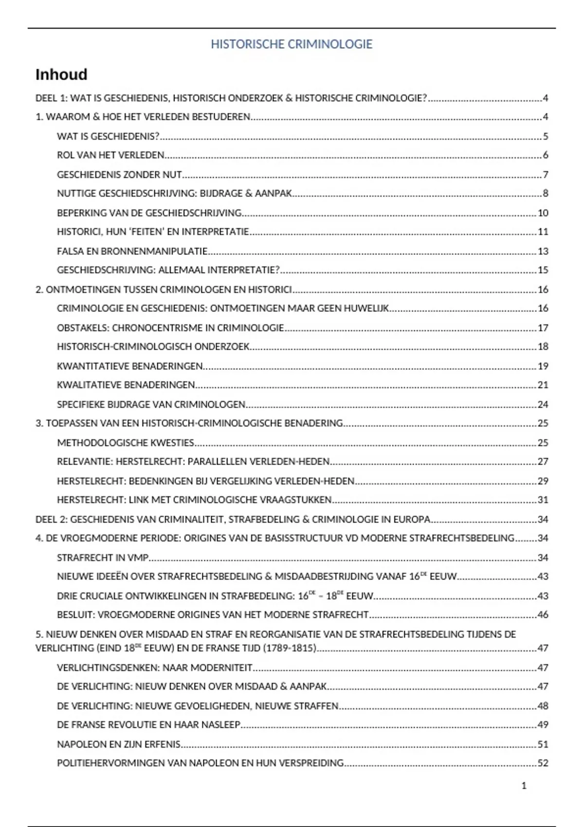 DEEL 2: GESCHIEDENIS VAN CRIMINALITEIT, STRAFBEDELING & CRIMINOLOGIE IN EUROPA......................................34