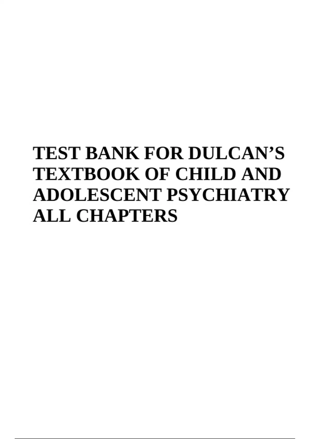 DULCAN’S TEXTBOOK OF CHILD AND ADOLESCENT PSYCHIATRY TEST BANK ALL CHAPTERS