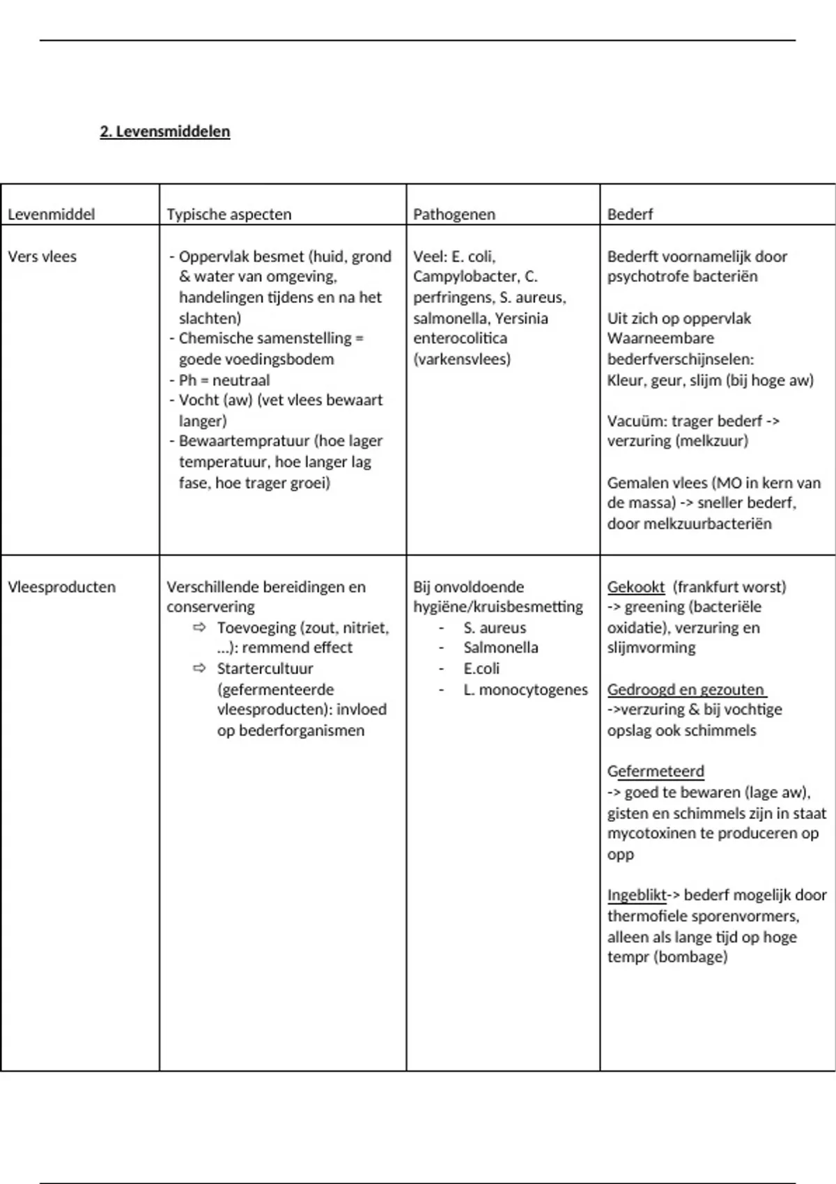 Levenmiddel Typische aspecten Pathogenen Bederf