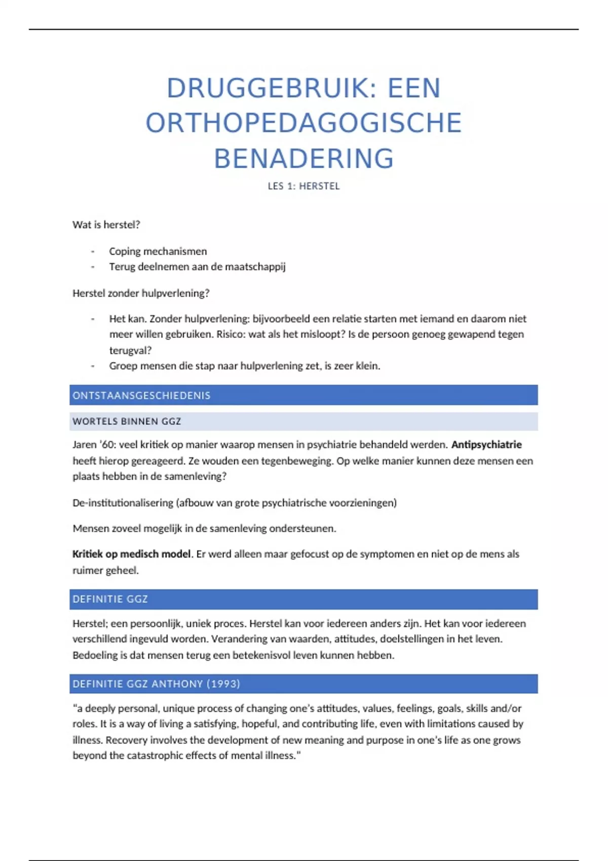 Dit is een samenvatting van het keuzevak Druggebruik. Deze bevat al mijn notities die ik genomen heb tijdens de lessen + informatie uit de powerpoints. Er is geen cursus van dit vak.