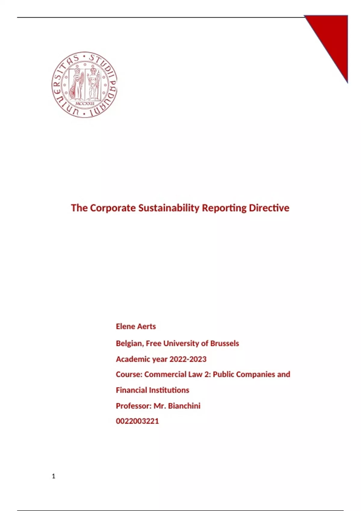 This paper will explore the background for the CSRD, its scope, as well as its impact on