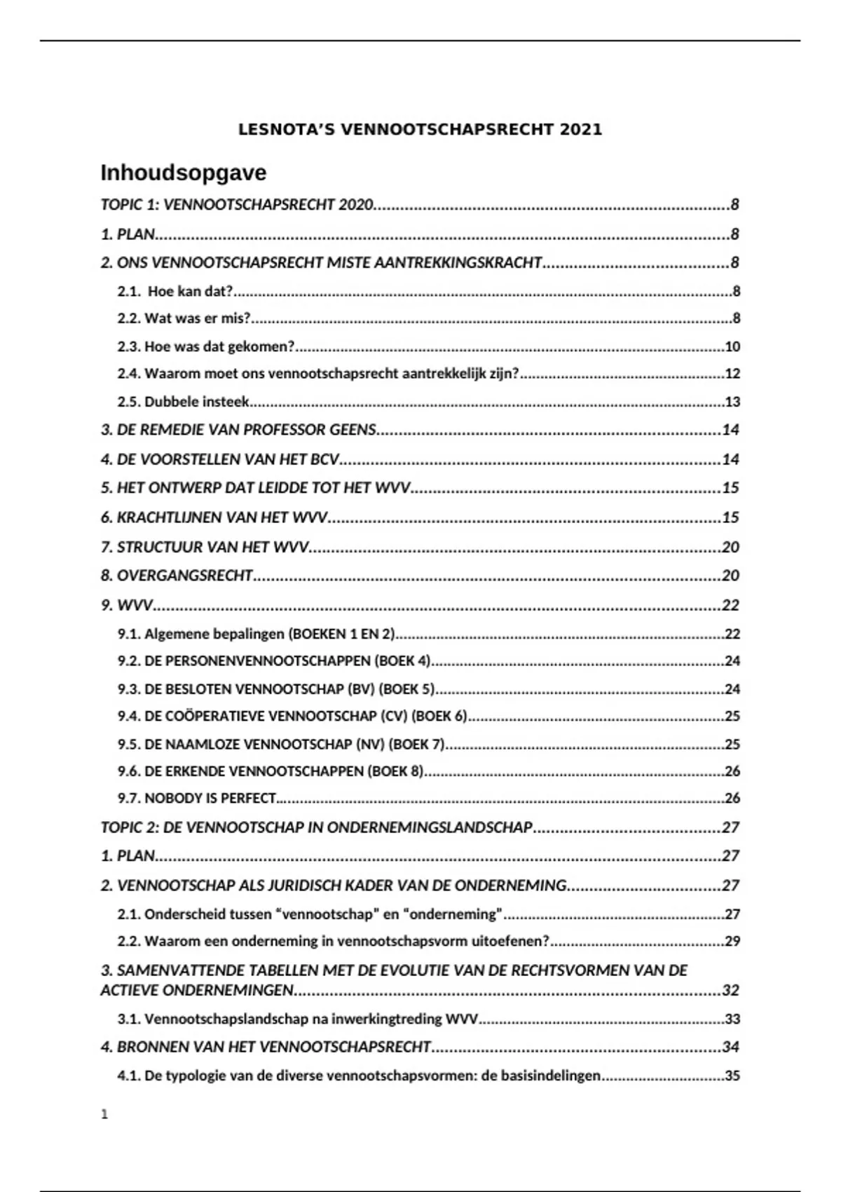 Lesnota's vennootschapsrecht: zowel colleges als powerpoint in één document verwerkt.