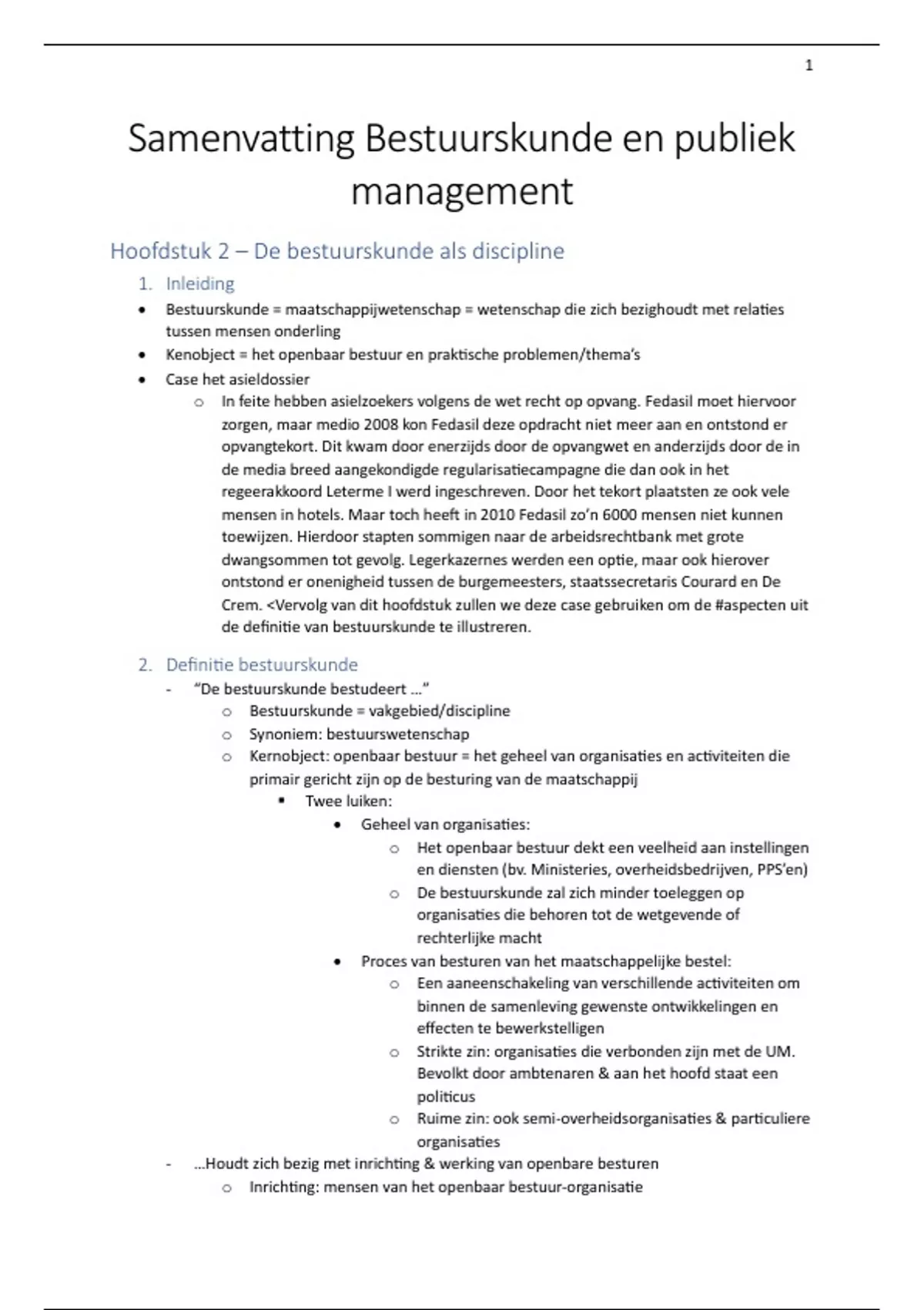 o Kernobject: openbaar bestuur = het geheel van organisaties en activiteiten die
