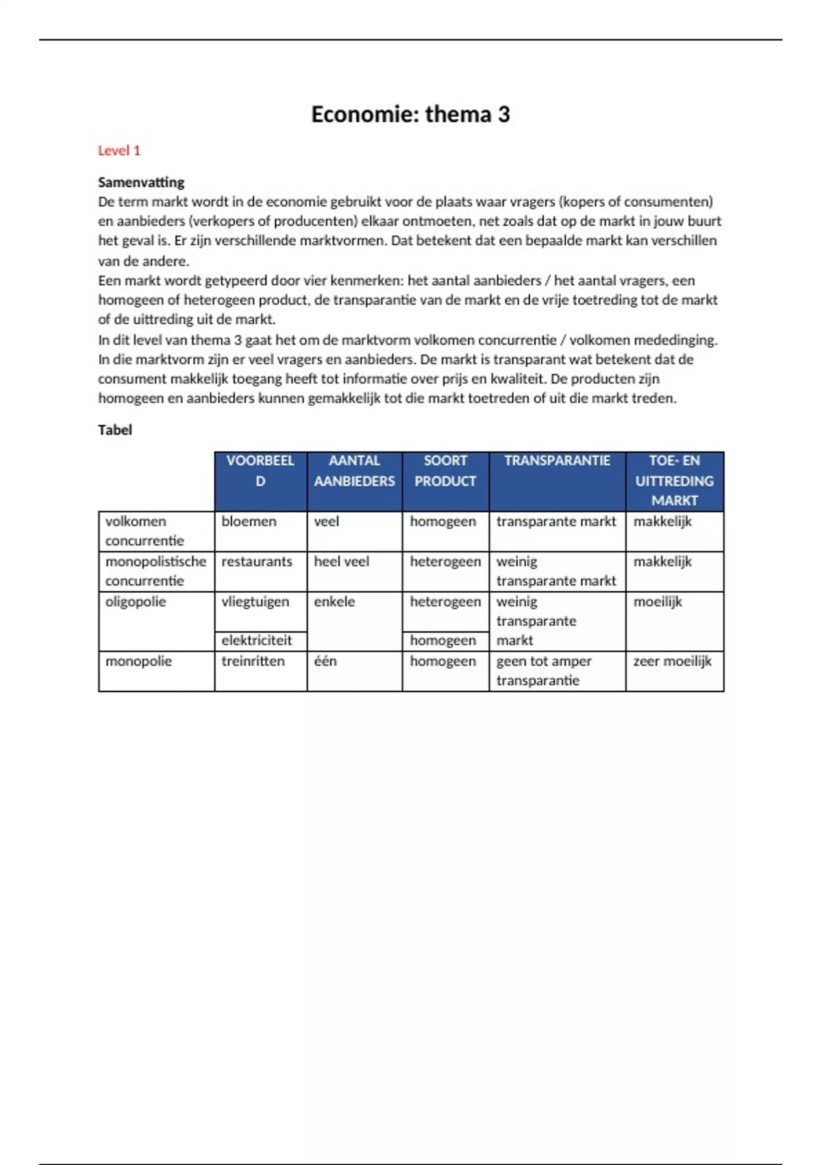 In dit level van thema 3 gaat het om de marktvorm volkomen concurrentie / volkomen mededinging.