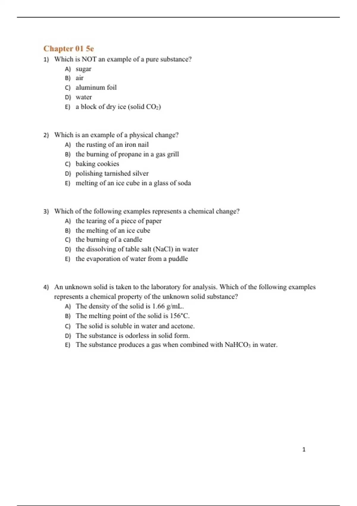 1) Which is NOT an example of a pure substance?