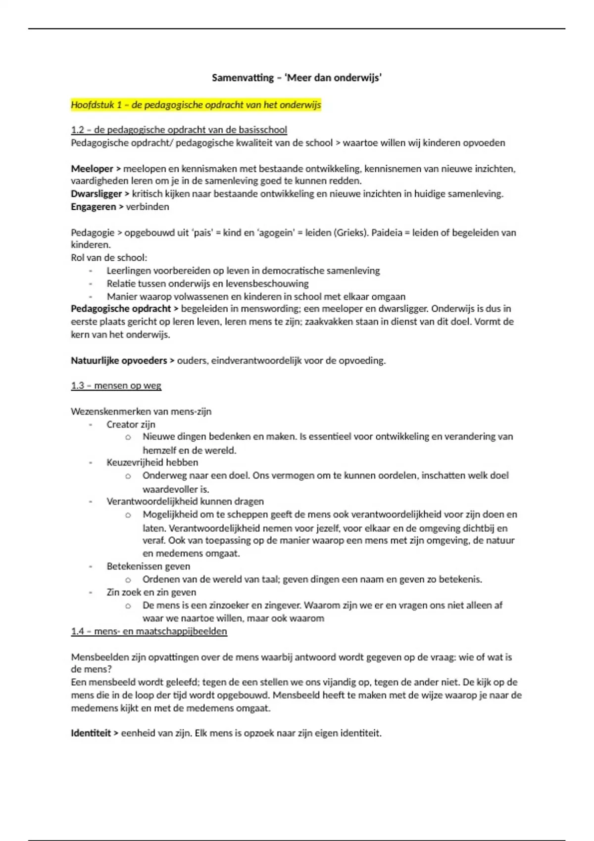 Hoofdstuk 1 – de pedagogische opdracht van het onderwijs