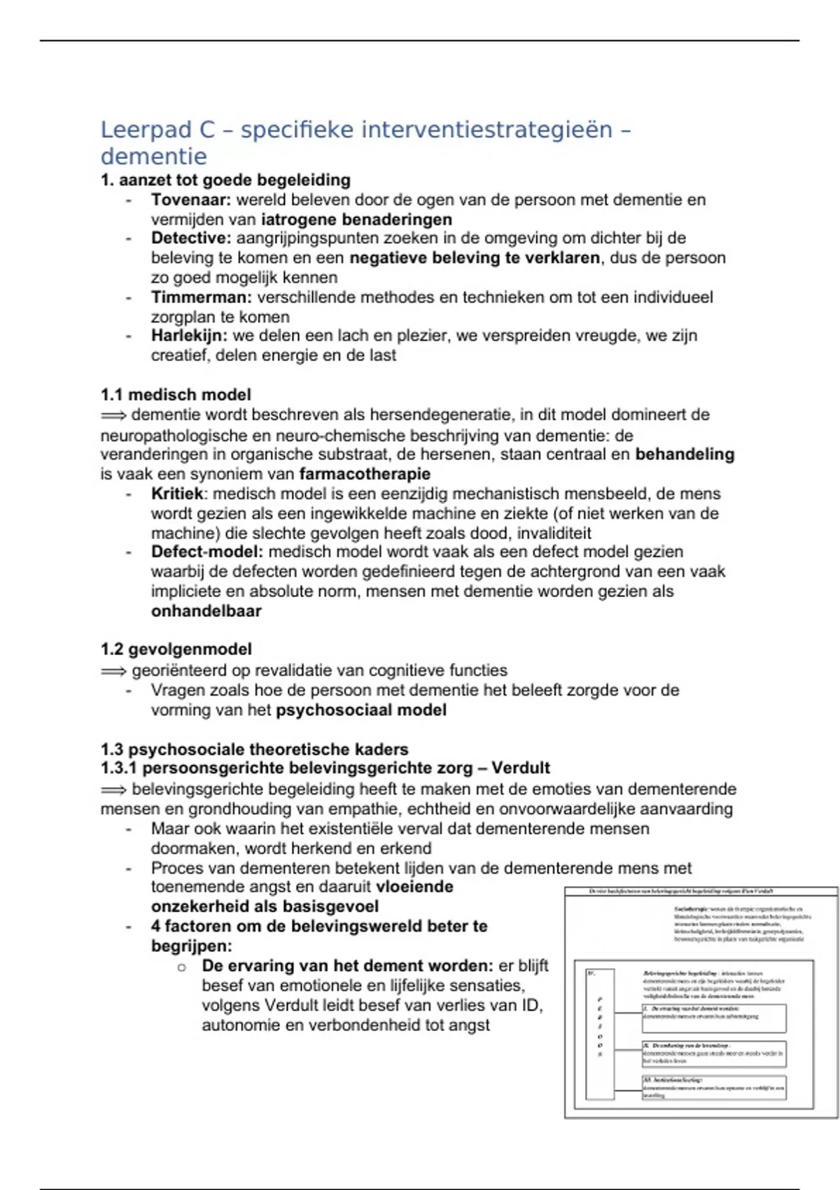 Samenvatting specifieke interventiestrategieën - dementie interventies