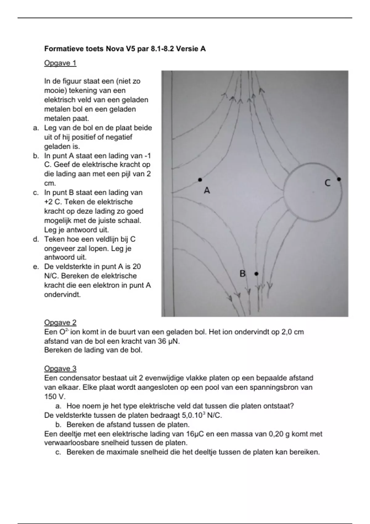 Natuurkunde vwo 5 formatieve toets H8 elektrische en magnetische velden