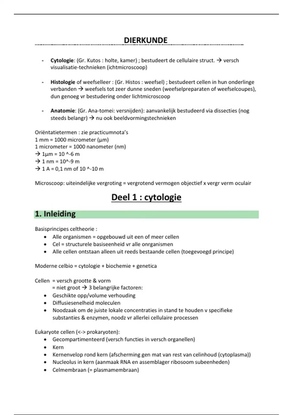 - Cytologie: (Gr. Kutos : holte, kamer) ; bestudeert de cellulaire struct. → versch