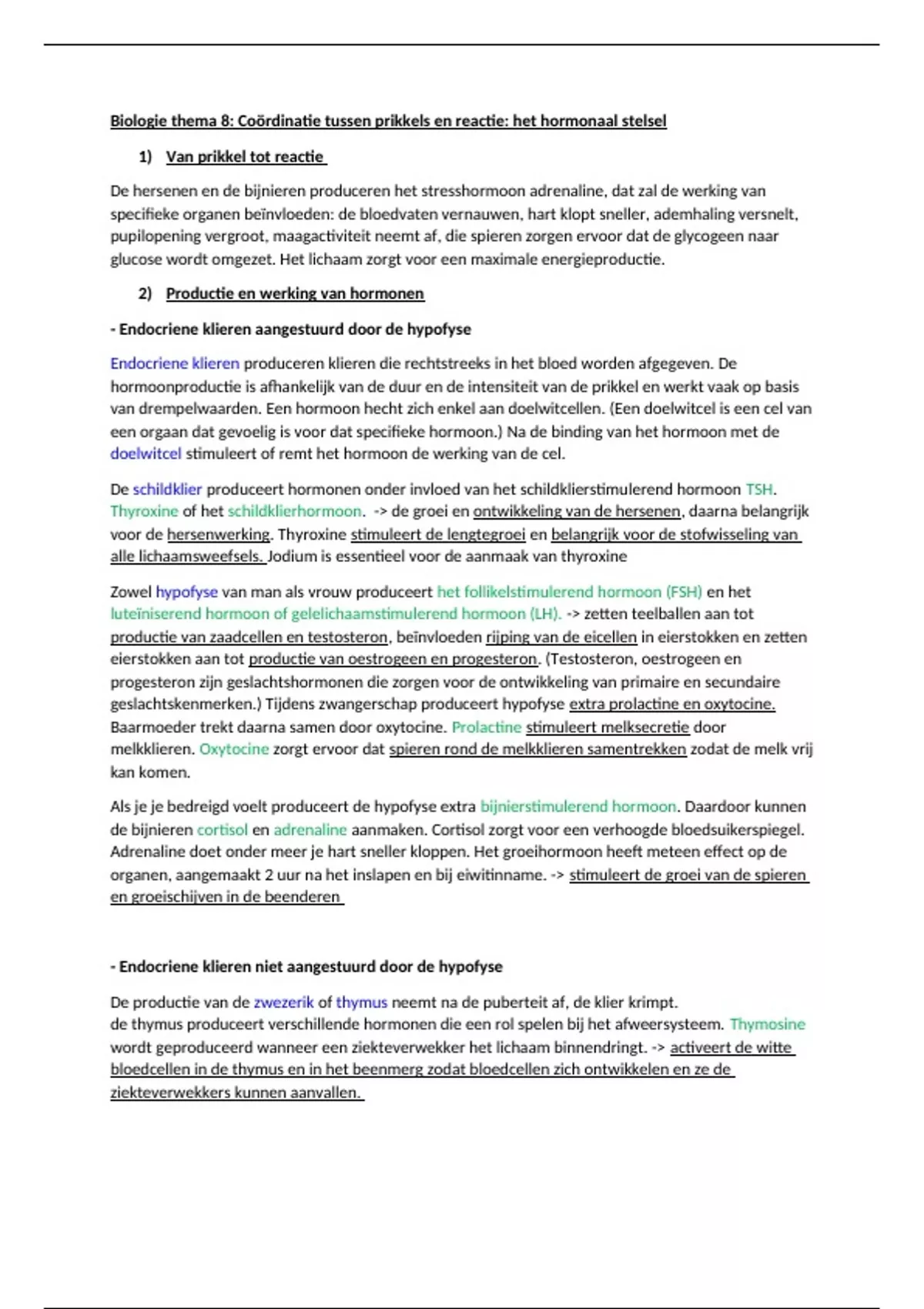 Biologie thema 8: Coördinatie tussen prikkels en reactie: het hormonaal stelsel