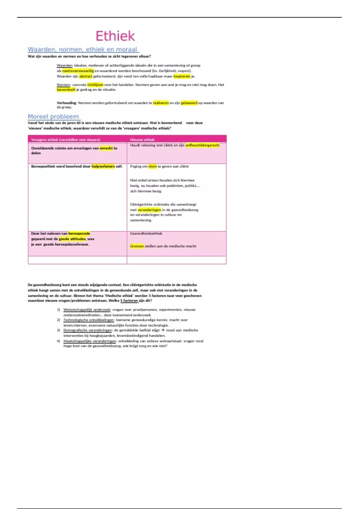ethiek hangt samen met de ontwikkelingen in de geneeskunde zelf, maar ook met veranderingen in de