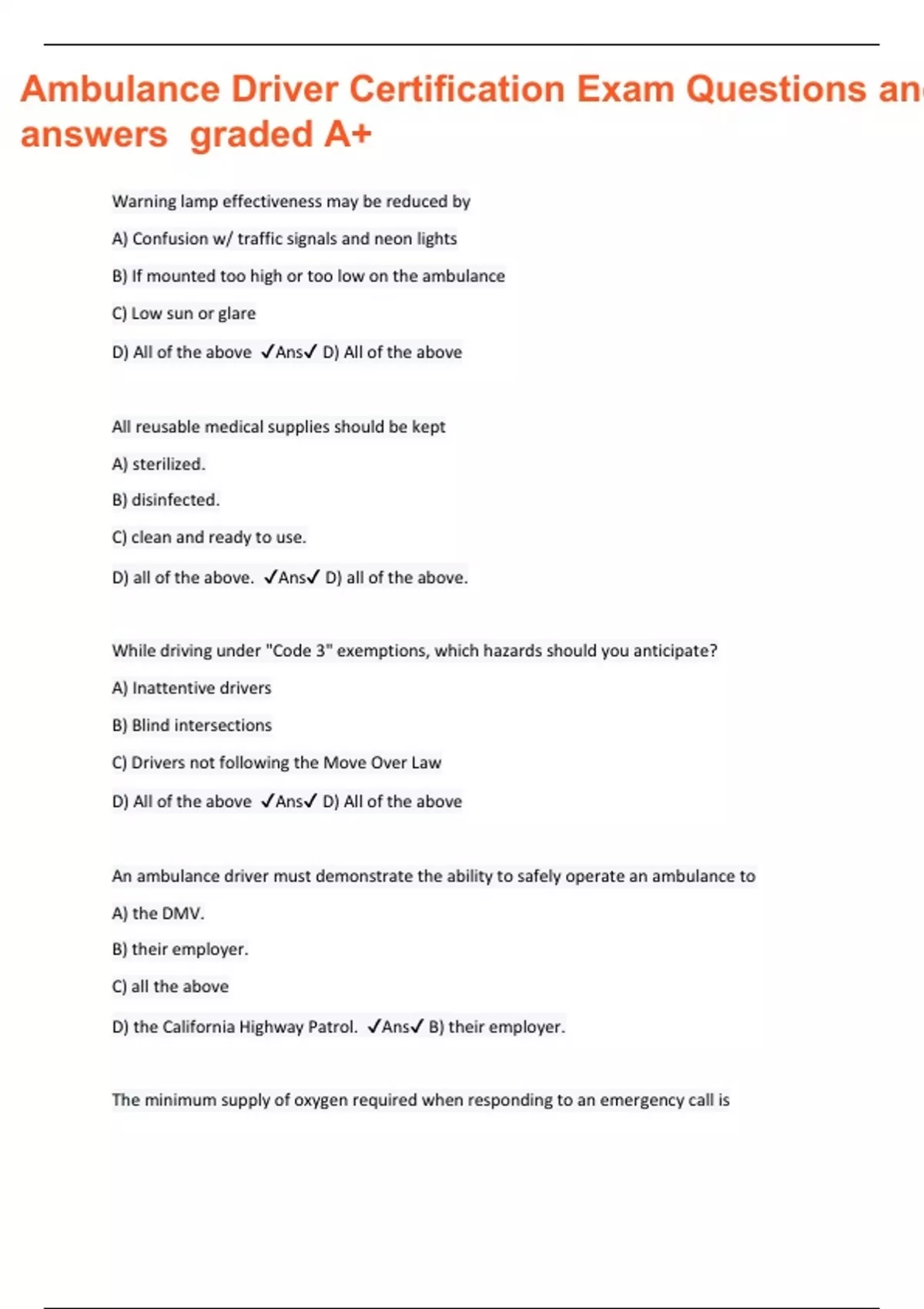 Ambulance Driver Certification Exam Questions and answers graded A+