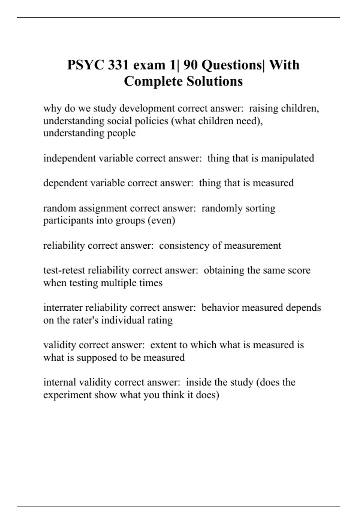 PSYC 331 exam 1| 90 Questions| With Complete Solutions